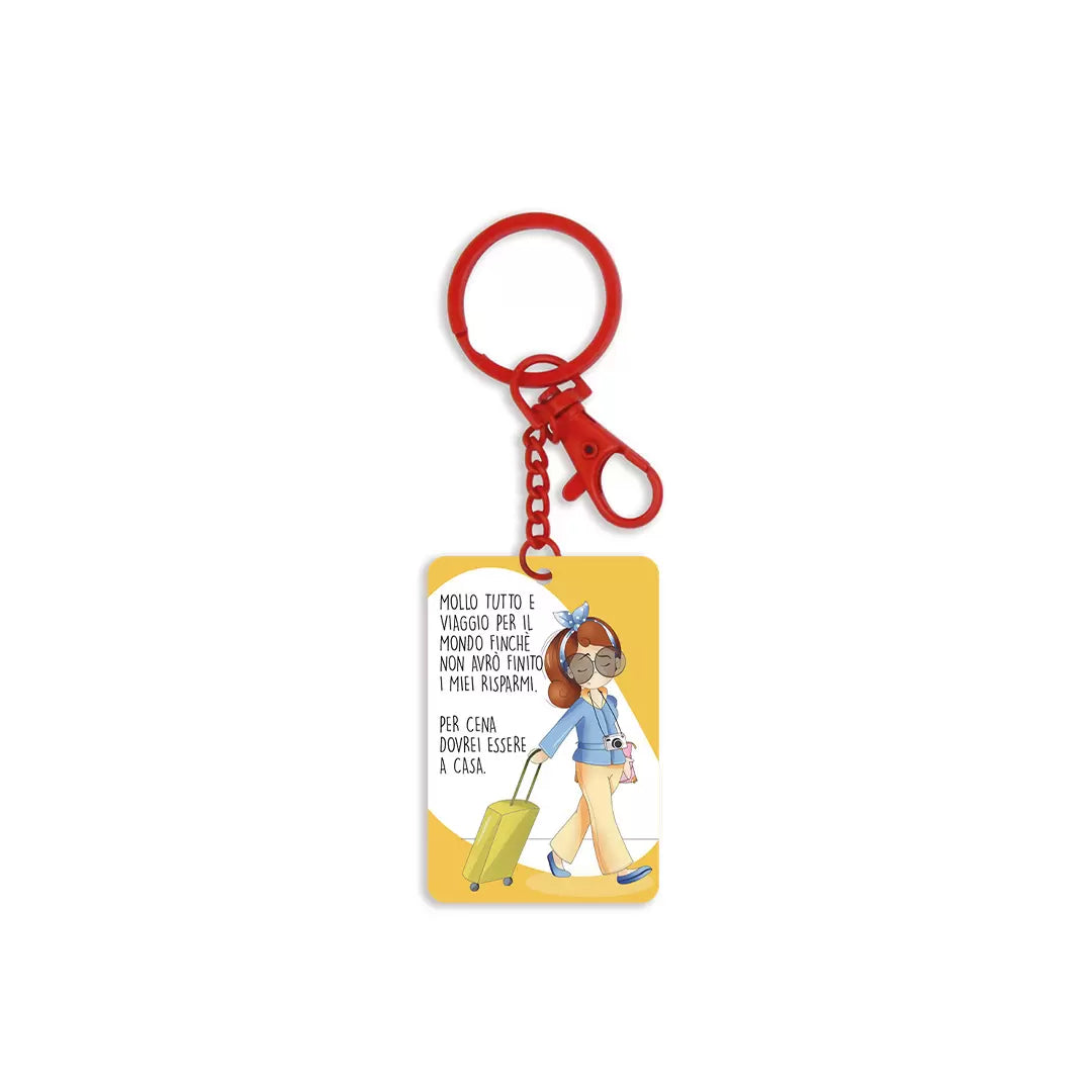Testo: "MOLLO TUTTO E VIAGGIO PER IL MONDO FINCHÈ NON AVRÒ FINITO I MIEI RISPARMI. PER CENA DOVREI ESSERE A CASA."